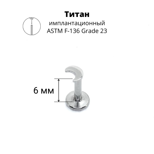 Лабрета 1,2 мм Push-in (без резьбы). Титан. Месяц 3х2,5 мм. ILTP1893