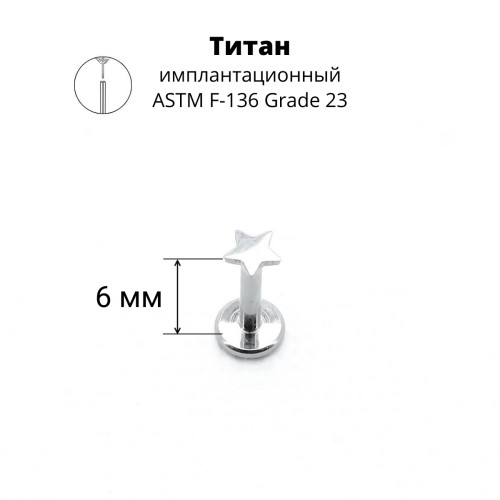 Лабрета 1,2 мм Push-in (без резьбы). Титан. Звезда 3 мм. ILTP1898
